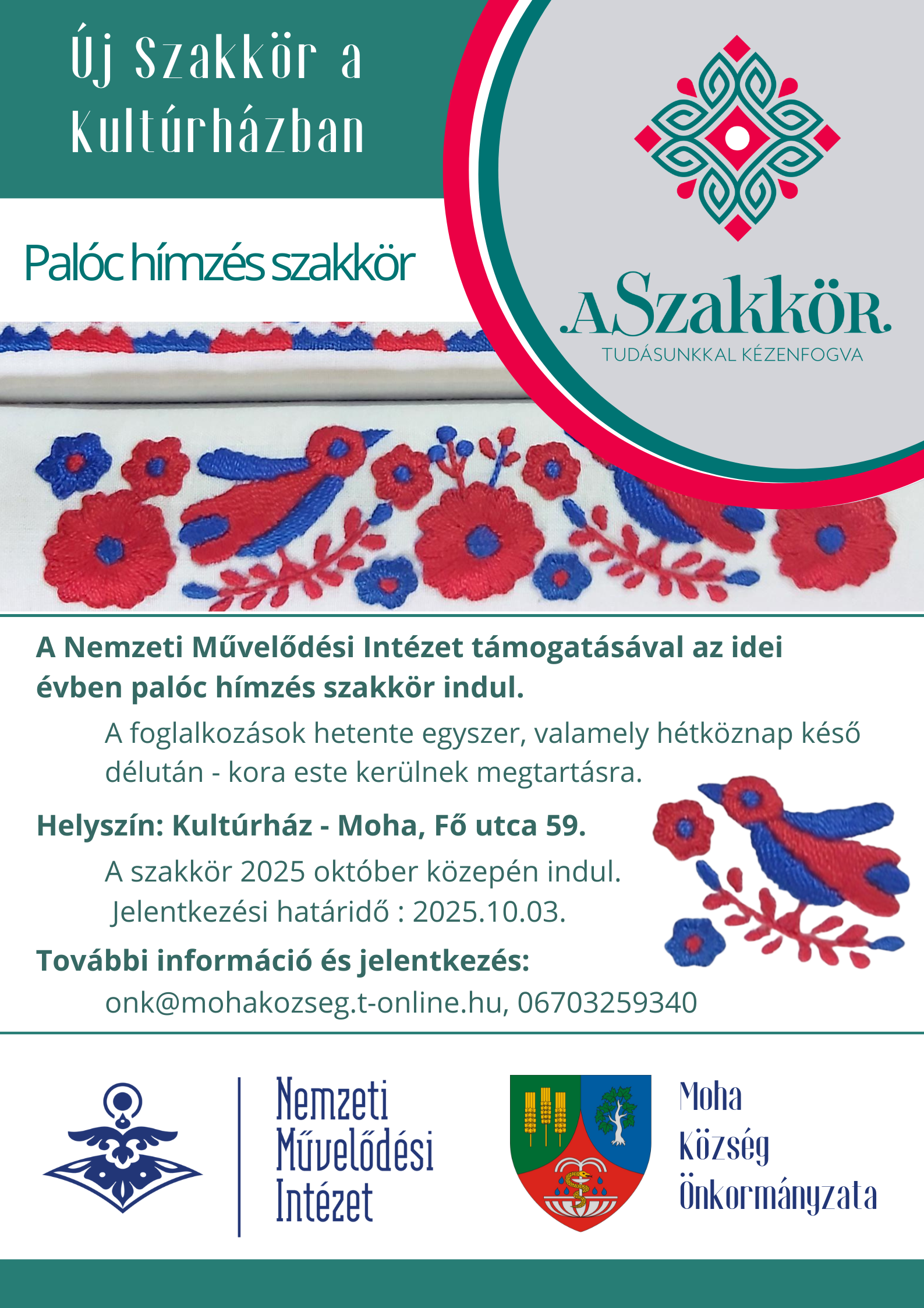 2025 őszén új szakkör indul Közösségi Színterünkben, a palóc hímzés alapjaival, motívumaival ismerkedhetnek meg a szakköri tagok.További információk a plakáton.